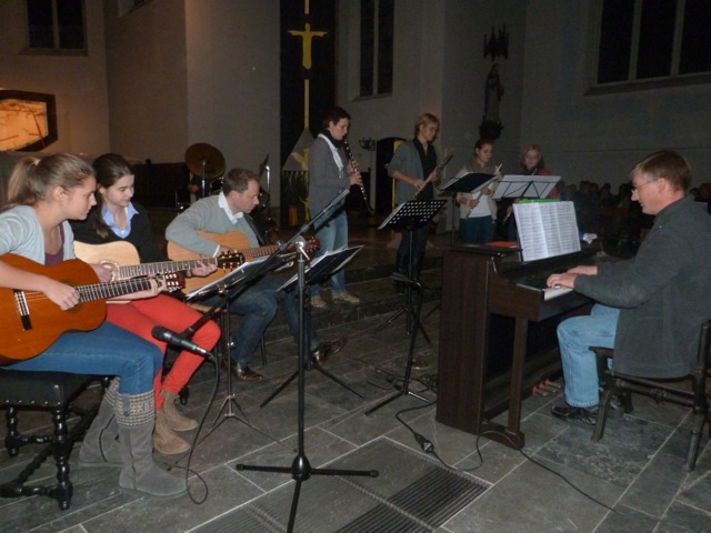 Lucitones und Gemeindereferent Thomas Krieger luden am Dienstag 11.12.2012, nachmittags zu einer adventlichen "Flucht aus dem Alltag" ein. Die halbstündige Meditation 5nach5 findet in der Adventszeit jeden Tag um 17:05 in der Pfarrkirche Sankt Sebastian in Würselen statt. Die Lucitones waren nur mit Piano, Querflöte und Gitarre vertreten, da beide Klarinettistinnen Iris Donner-Hermanns und Katrin Grafen verhindert waren. Aber auch in dieser Minimalbesetzung erhielt die Gruppe Applaus für ihre musikalischen Beiträge, die gut ausgewählt waren schön zur mediatativen Thematik passten.